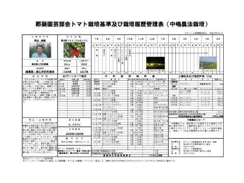 二水トマト 栄養バランスの良い土で育ったトマトは、実がギュッとつまって水につけると沈みます。 ミネラルバランスの良い土壌で育ったミニトマトは、香りが高く長持ちします。 ~出典「間違いだらけの有機農法」(文理書院)~ 私たちは、ミネラルとアミノ酸が豊富でコクのあるトマト&ミニトマトづくりをめざします。 トマト栽培基準および栽培履歴管理表 二水会によるトマト栽培基準および栽培管理表です。 画像をクリックするとPDFファイルでご覧になれます。 二水会は、栽培基準と栽培履歴管理表を公開し、安全で美味しい農産物を供給しています。
